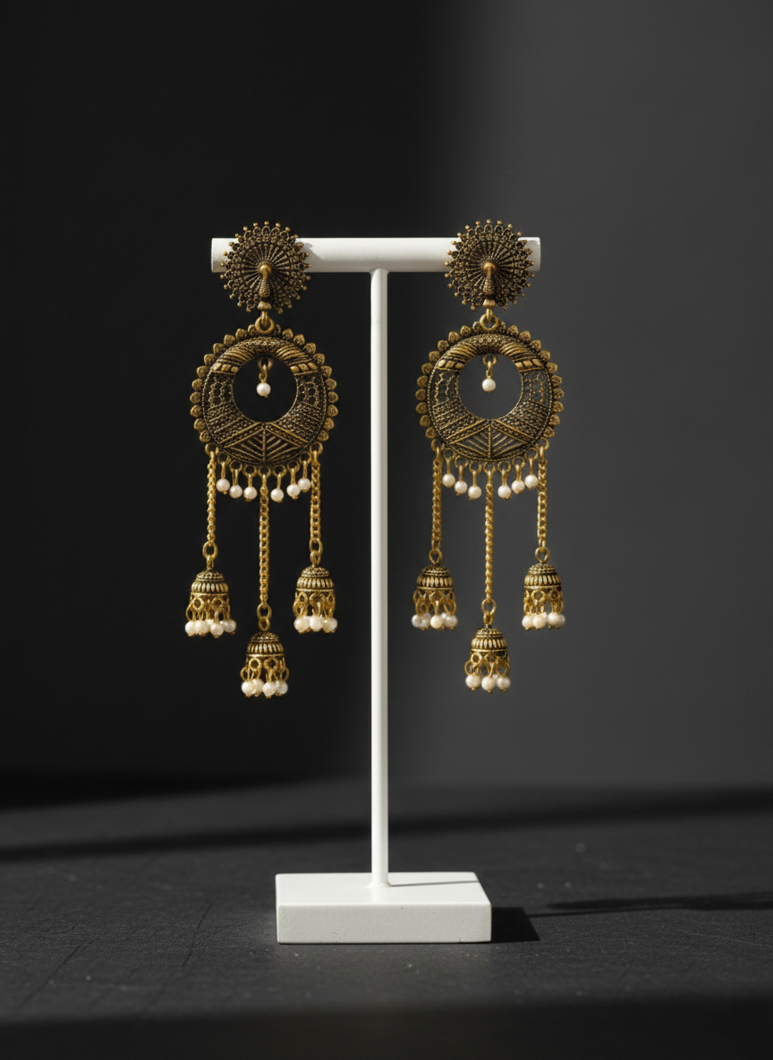 | Product Name | Vintage Antique Gold Jhumka Chandbali Fusion Earrings |