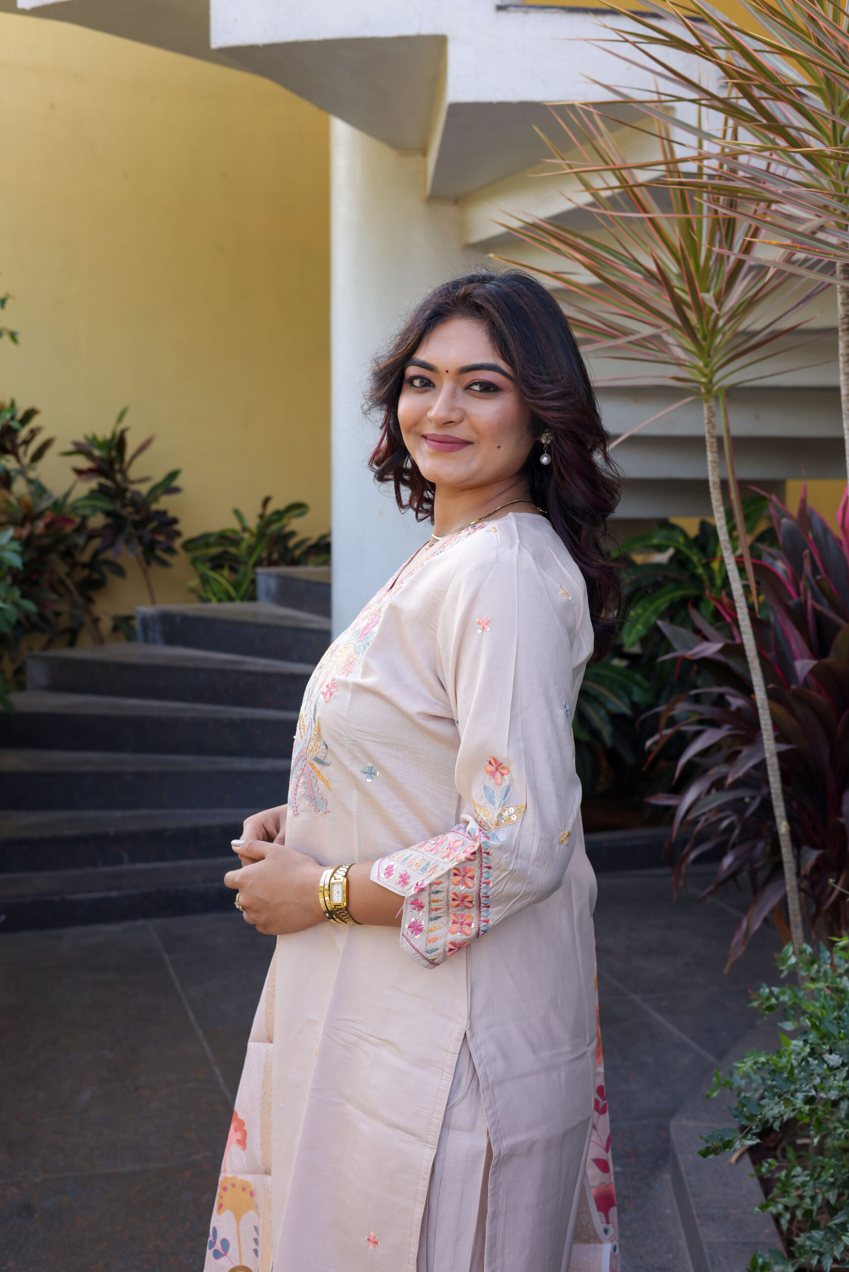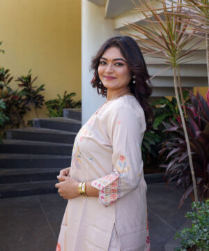 | Kurta Details | Straight-cut tunic with intricate multi-color floral embroidery on the neckline and sleeve cuffs. |